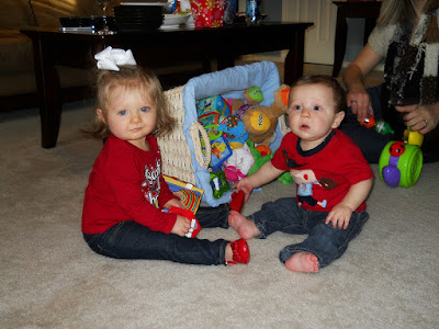 E with Cousin G.  It's not easy to get 2 babies to pose!